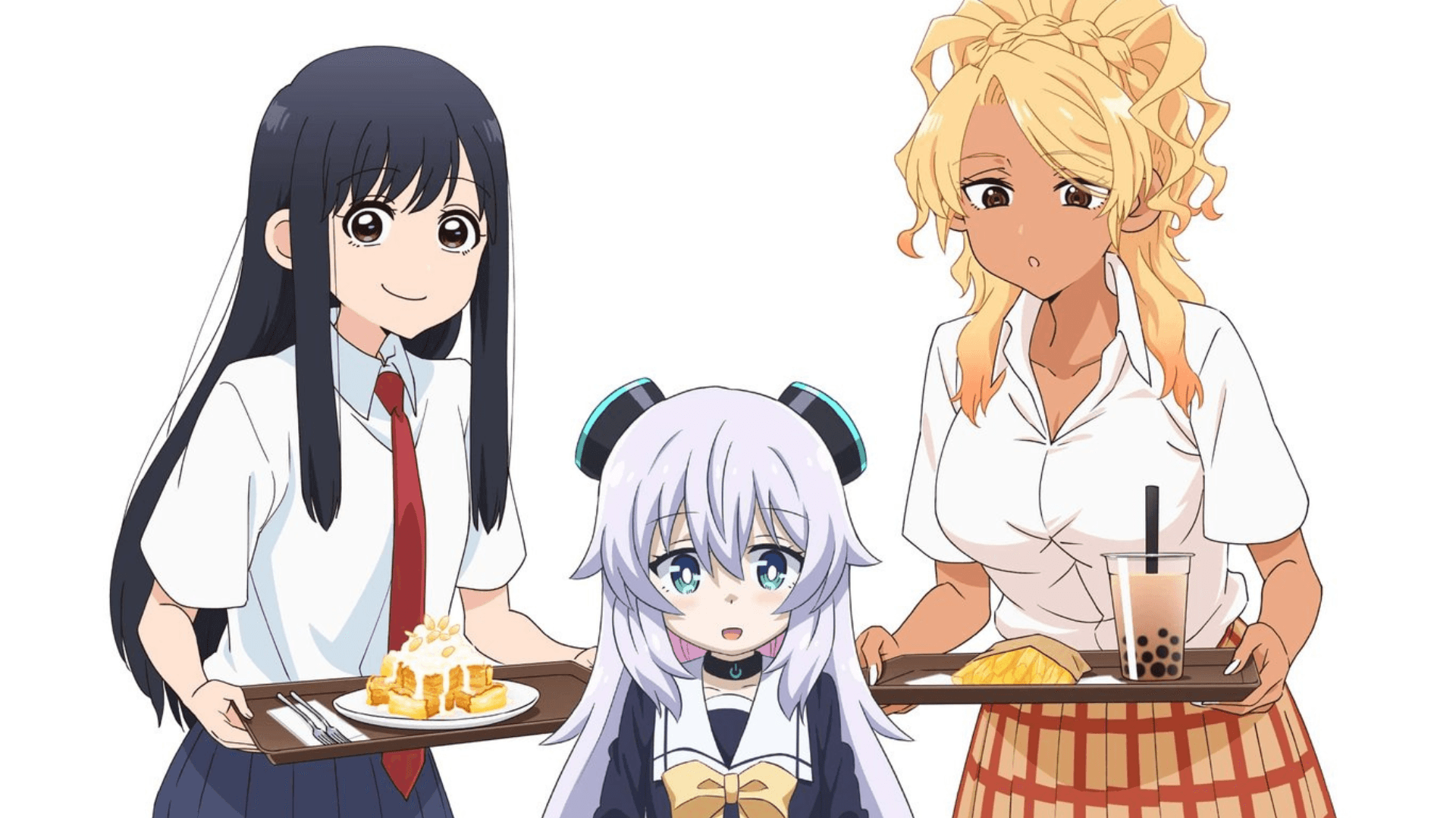 La ilustración muestra a Wada y Yamamoto, protagonistas de See You Tomorrow at the Food Court, acompañadas por Alma-chan, la carismática protagonista de Alma-chan Wants to Be a Family!. La imagen simboliza el ambiente cotidiano y entrañable que caracteriza a ambas historias.