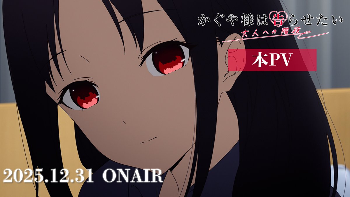 Se informa que el anime de Kaguya-sama: Love is War ha revelado el video promocional completo para su nuevo especial de televisión titulado Kaguya-sama wa Kokurasetai: Otona e no Kaidan (The Steps to Become an Adult). El anuncio confirmó que este esperado episodio se estrenará el 31 de diciembre a las 22:00 hora de Japón en canales como Tokyo MX.