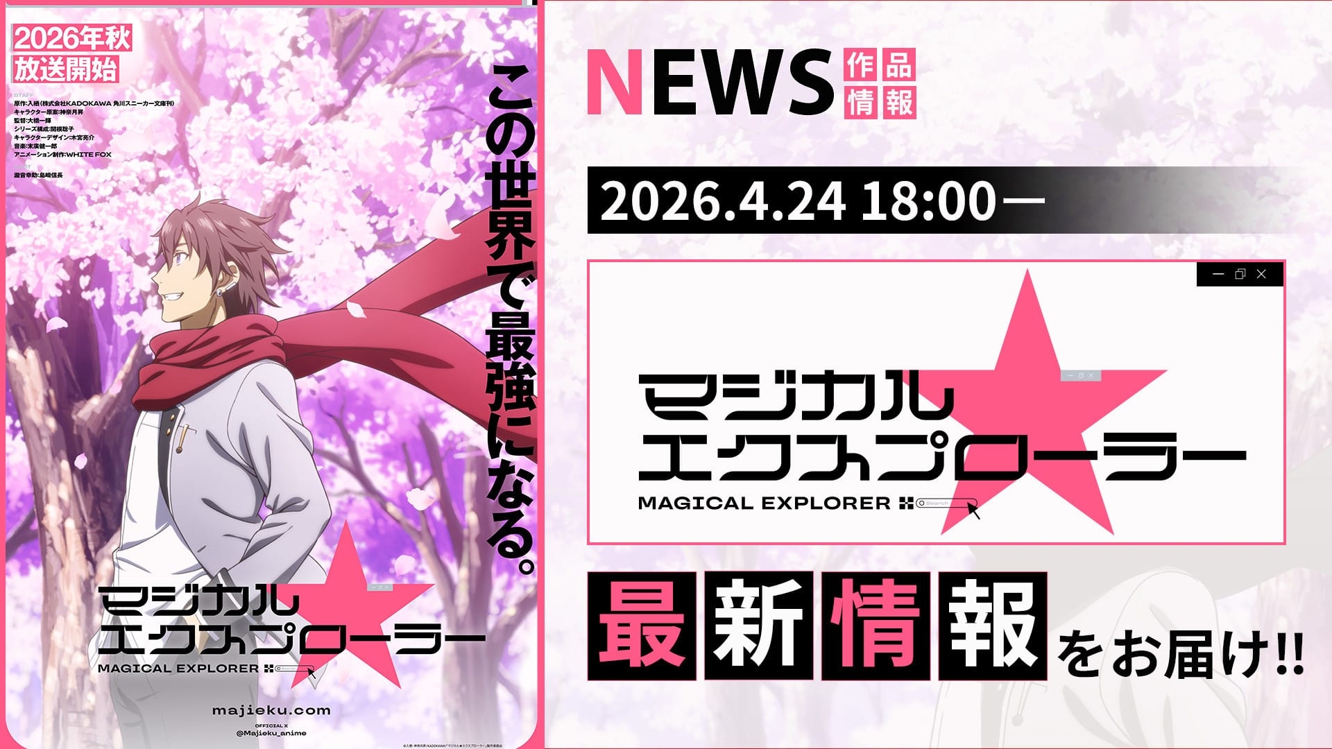 Kazuki Ohashi (SHADOWS HOUSE) dirige el anime de Magical Explorer en el estudio WHITE FOX, con composición de serie de Satoko Sekine (Mysteria Friends), diseño de personajes de Ryosuke Kimiya (Grimoire of Zero) y música de Kenichiro Suehiro (Daemons of the Shadow Realm).